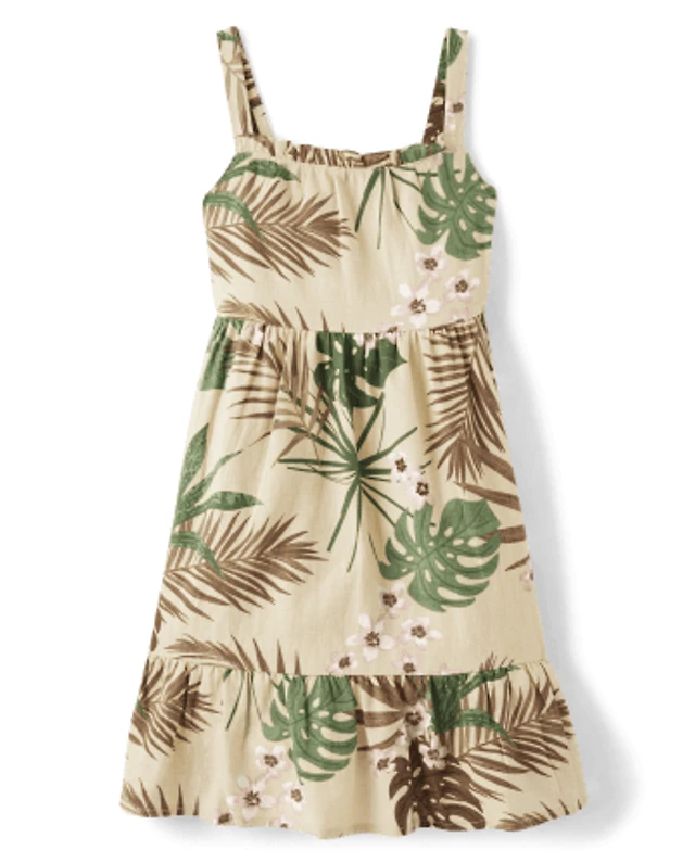 Girls Matching Family Palm Leaf Tiered Dress