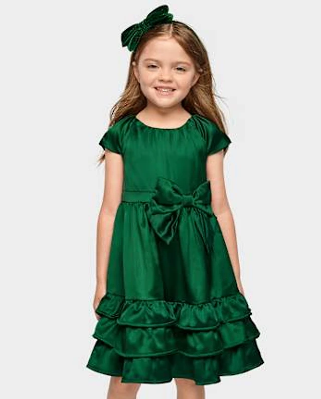 Baby And Toddler Girls Oversized Bow Satin Fit Flare Dress