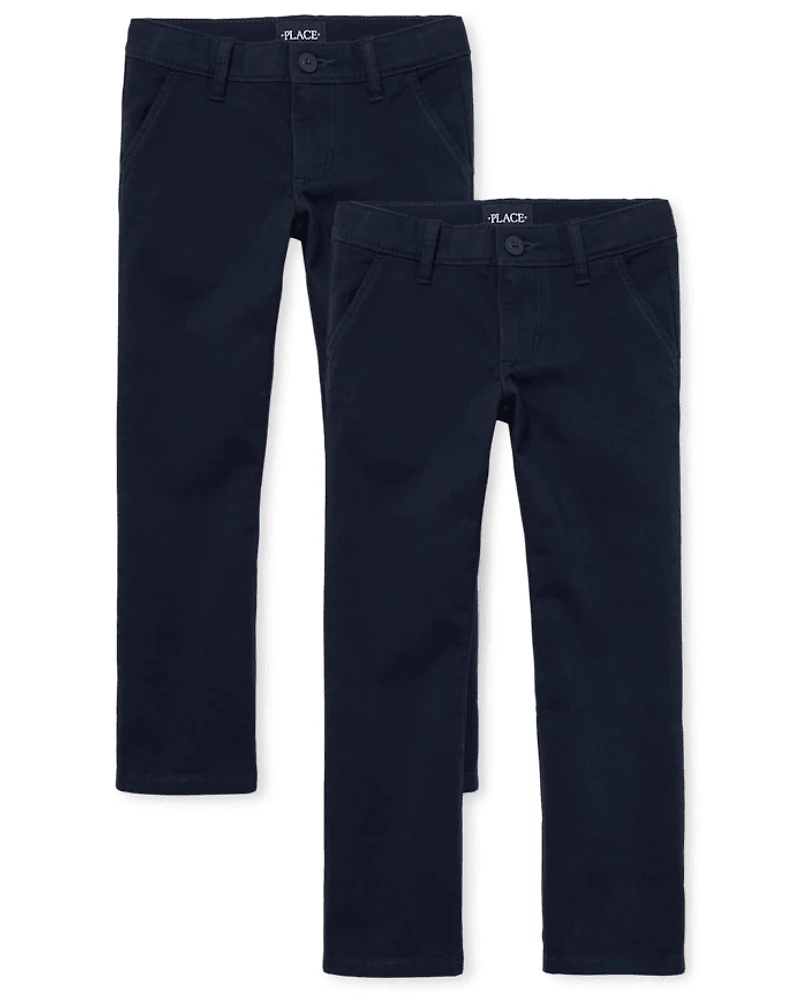 Girls Uniform Stretch Bootcut Chino Pants 2-Pack - Plus