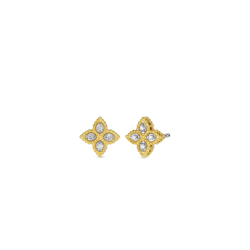 GOLD PRINCESS FLOWER SMALL DIAMOND STUD EARRINGS