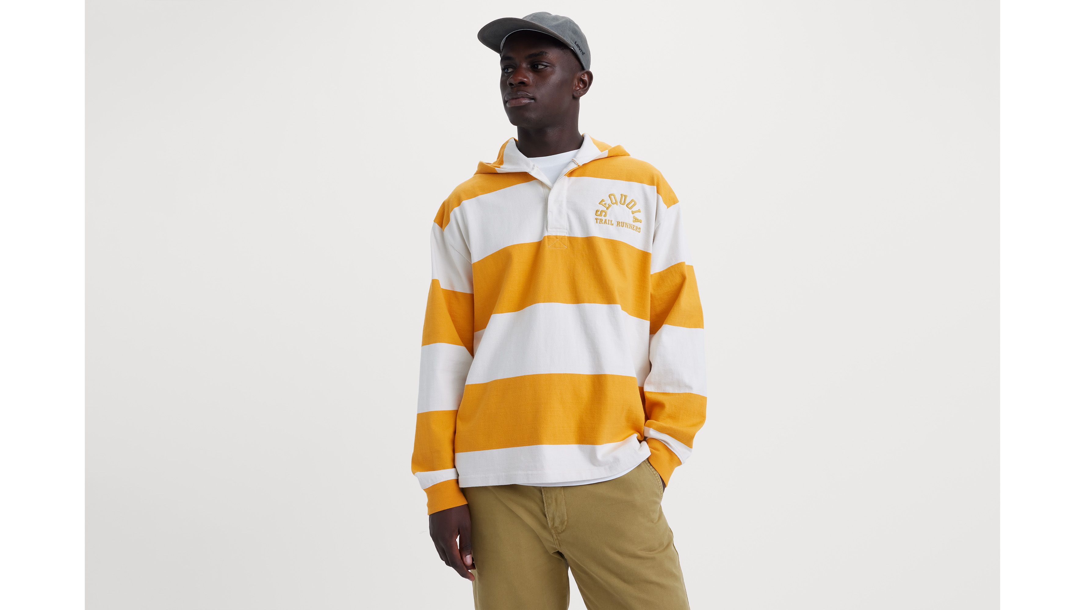 What do you get when you mix cozy with sporty? Our Club Rugby Sweatshirt. We crafted it with a classic wide stripe design, an easy hood and a relaxed fit.