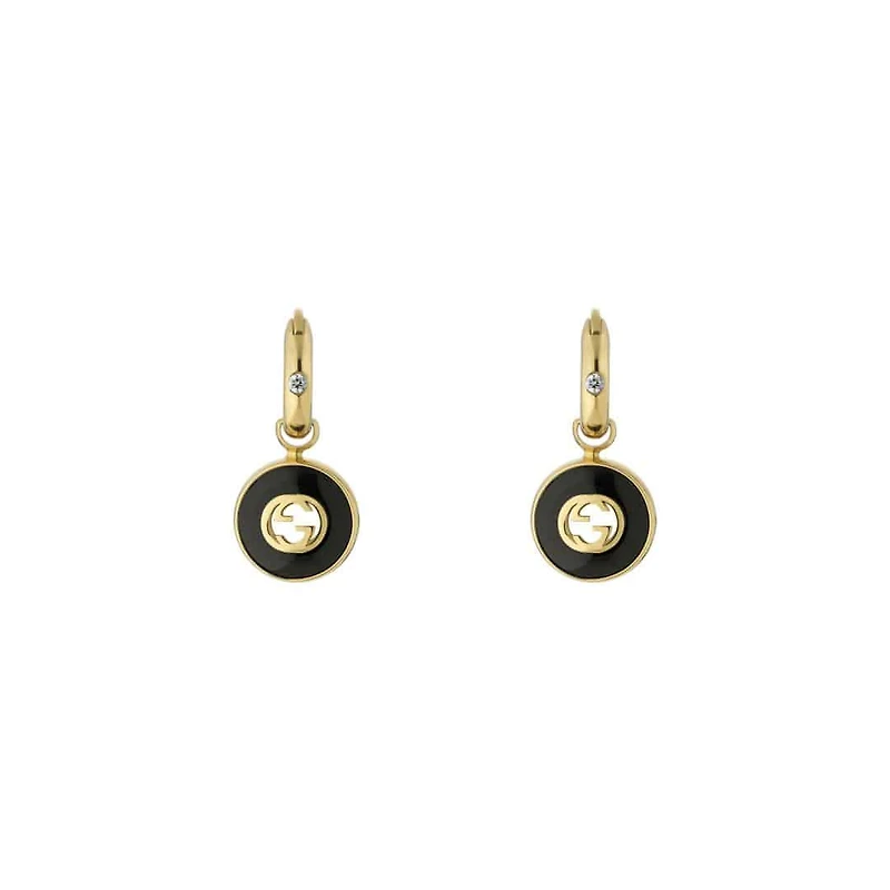 Earrings in yellow gold, onyx and diamond_pendant 12mm