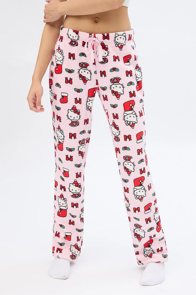 Hello Kitty Stocking Plush Pajama Pant - Light Pink /