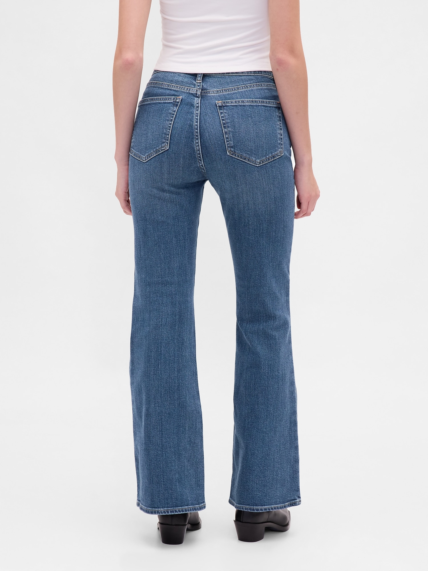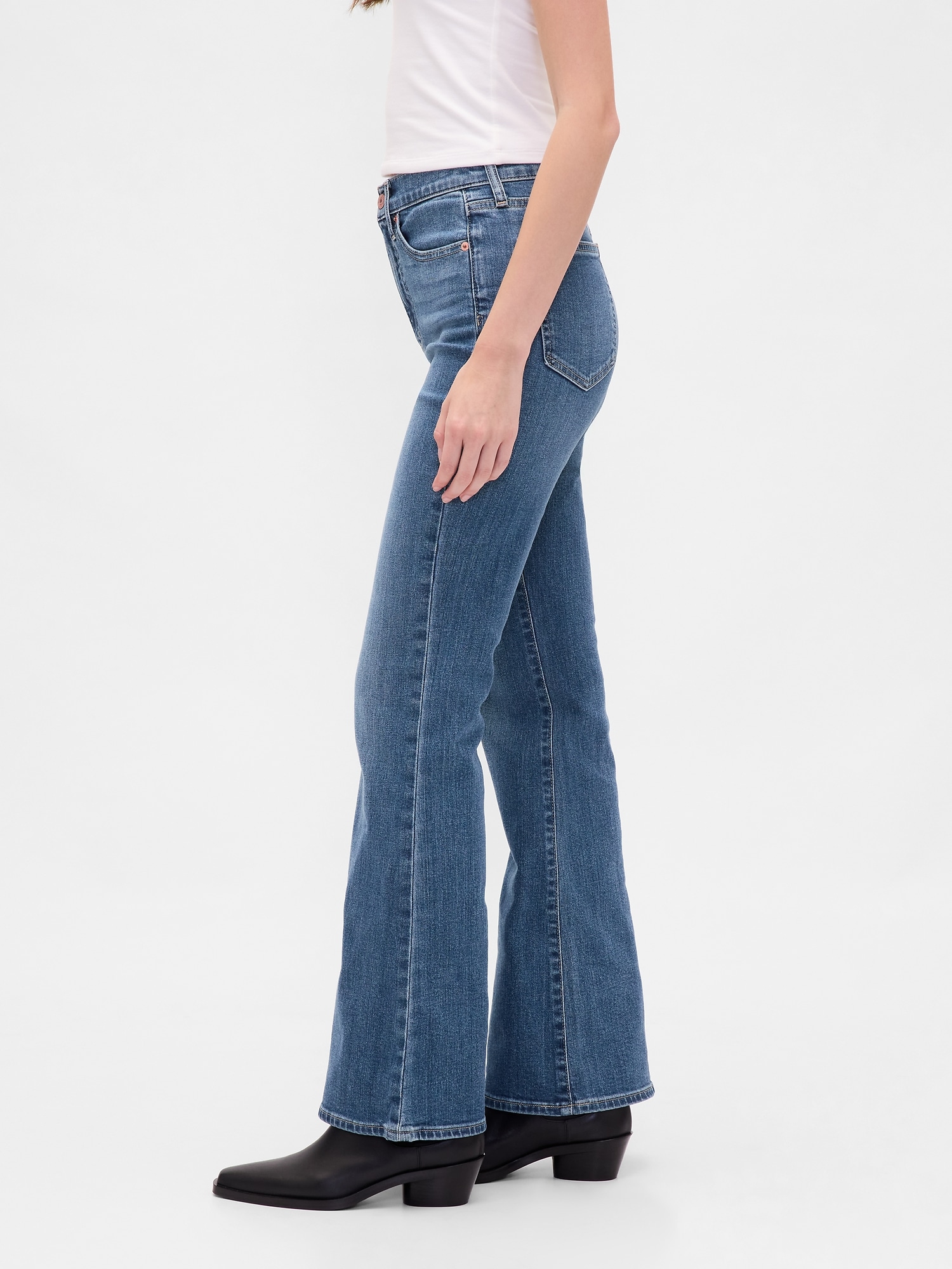 Fit: Snug & flattering through the hip & thigh with a flared leg. Fabric: 86% Cotton, 13% Recycled Materials, 1% Stretch. Stretch: Stretch Jeans. A bit of hug & a lot of hold. Comfortable & designed to flatter. Rise: High Rise Jeans. Look: A classic five-pocket jean in a dark wash. Details: Zip fly, five-pocket styling & holds-you-in front pockets. Responsibly Made: This pair of jeans is part of our water-saving Washwell program. Compared to conventional wash methods, Washwell has saved millions of liters of water since 2016. This product was made in a factory that invests in gender equality and women’s empowerment. Through RISE (Reimagining Industry to Support Equality) and Gap Inc. ’s program P. A. C. E. (Personal Advancement & Career Enhancement), we support people who make our clothes to build the skills, knowledge, confidence, and resilience needed to advance in work and life. .Learn more.here. Also available in Curvy. Cotton 86% Recycled Cotton 7% Elastane 1% Recycled Polyester 6%