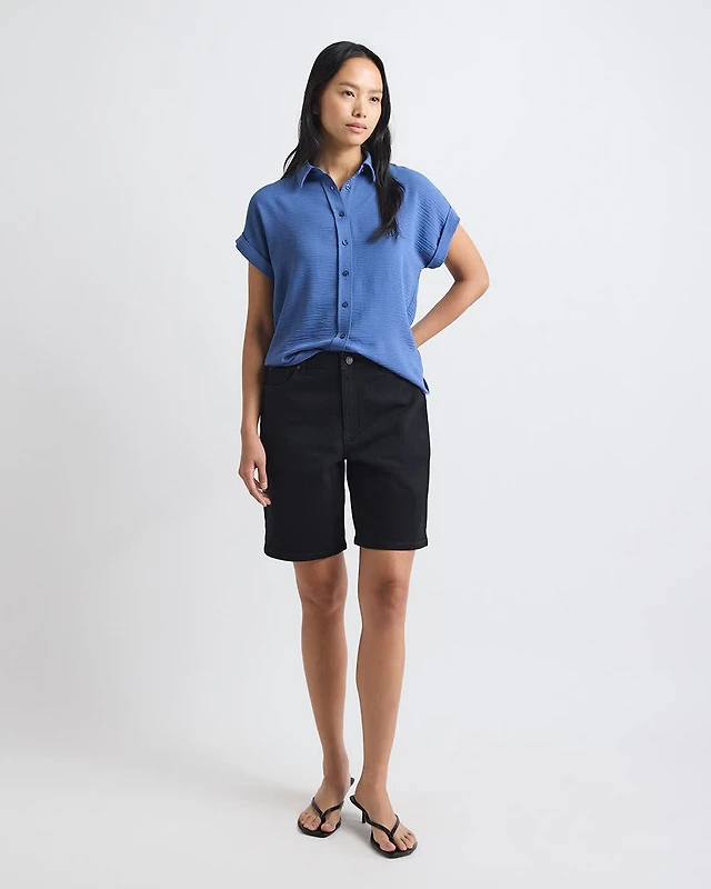 BASIC STRAIGHT DENIM BERMUDA SHORTS