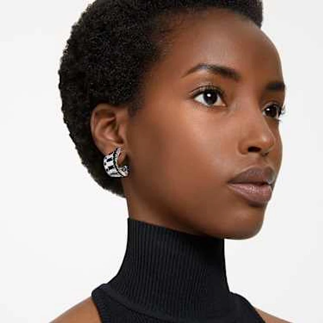 Hyperbola ear cuffs, Mixed cuts, Black, Rhodium plated by SWAROVSKI