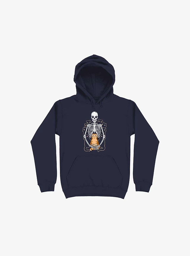 I Wish Was My Cat Skeleton Navy Blue Hoodie
