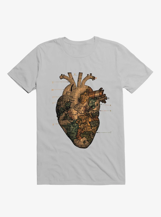 I'll Find You Heart World Map Ice Grey T-Shirt