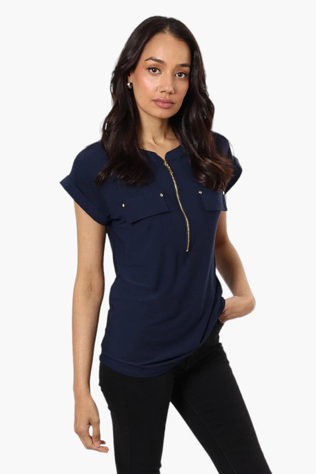 International INC Company Floral Lace Up Short Sleeve Blouse - Black