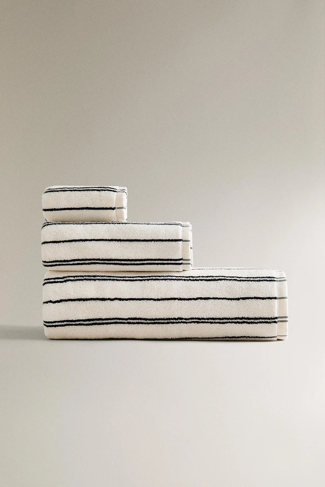 TEXTURED COLORED BATH TOWEL WITH STRIPES