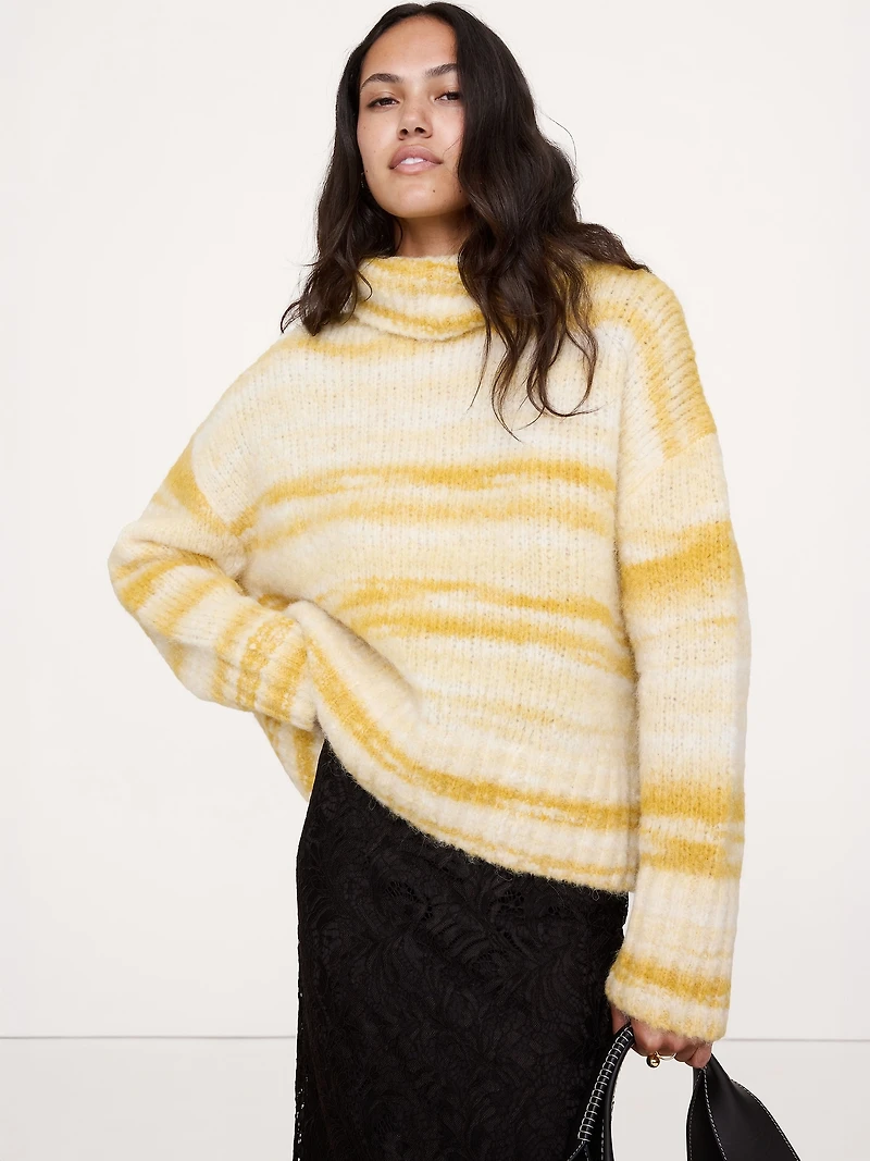 So soft, so warm, this fluffy sweater is made from a luxe alpaca blend—here, in an oversized silhouette with a funnel neck. Oversized fit: Lots of room through chest, shoulders, and waist. Dropped shoulder seam. Fabric from Italy's Pinori Filati mill. Funnel neck. Straight hem.