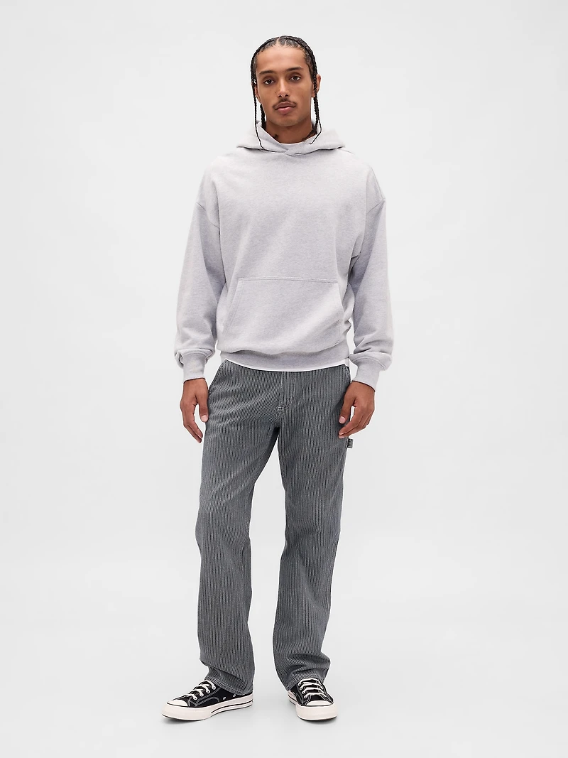 Coupe.: hanche et cuisse étroites, jambe droite. Tissu.: 94.% coton, 5.% coton recyclé, 1.% élasthanne. Extensibilité.: légèrement extensible. Denim authentique à la sensation douce et confortable d’un jean rodé. ​ Modèle.: jean droit décontracté à cinq poches à motif de chevrons sur l’ensemble. Détails.: Braguette à glissière et modèle à cinq poches. Bride de menuisier et poches latérales. ​ Produit écoresponsable.: ce vêtement fait partie de notre programme d’économie d’eau Washwell. Ce programme utilise au moins 20.% moins d’eau que les méthodes de lavage conventionnelles. Un choix plus écologique.: Fait de coton recyclé à 5.%. Comparativement aux matières vierges, l’utilisation de matières recyclées permet de réduire l’utilisation des ressources et le gaspillage. Ce produit a été fabriqué dans une usine qui investit dans l’égalité des genres et l’autonomisation des femmes grâce au programme Reimagining Industry to Support Equality (RISE). Pour en savoir plus.: gapinc. com/fr-ca/impact/bridging-the-equity-gap