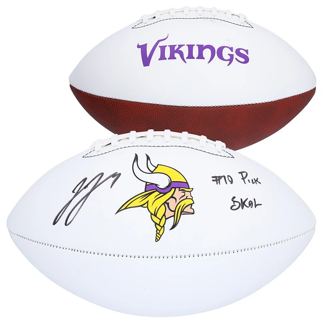 J.J. McCarthy Minnesota Vikings Autographed Franklin White Panel Football with "#10 Pick" & "SKOL" Inscriptions
