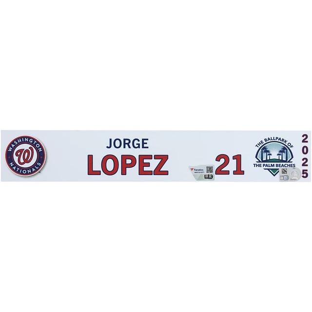 Jorge López Washington Nationals Player-Issued #21 Nameplate from 2025 MLB Spring Training