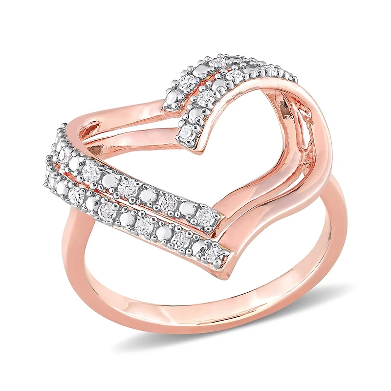Julianna B Rose Plated Sterling Silver 0.20CTW Diamond Heart Ring