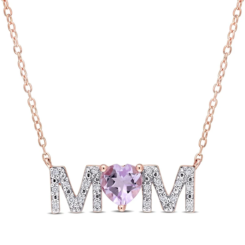Julianna B Rose Plated Sterling Silver Amethyst & 0.10ctw Diamond Mom PendantJulianna B Rose Plated Sterling Silver Amethyst & 0.10ctw Diamond Mom PendantJulianna B Rose Plated Sterling Silver Amethyst & 0.10ctw Diamond Mom Pendant