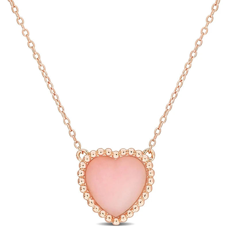 Julianna B Rose Plated Sterling Silver Heart Shape Pink Opal Necklace
