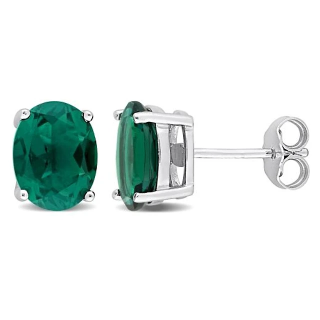 Julianna B Sterling Silver Created Emerald Stud Earrings
