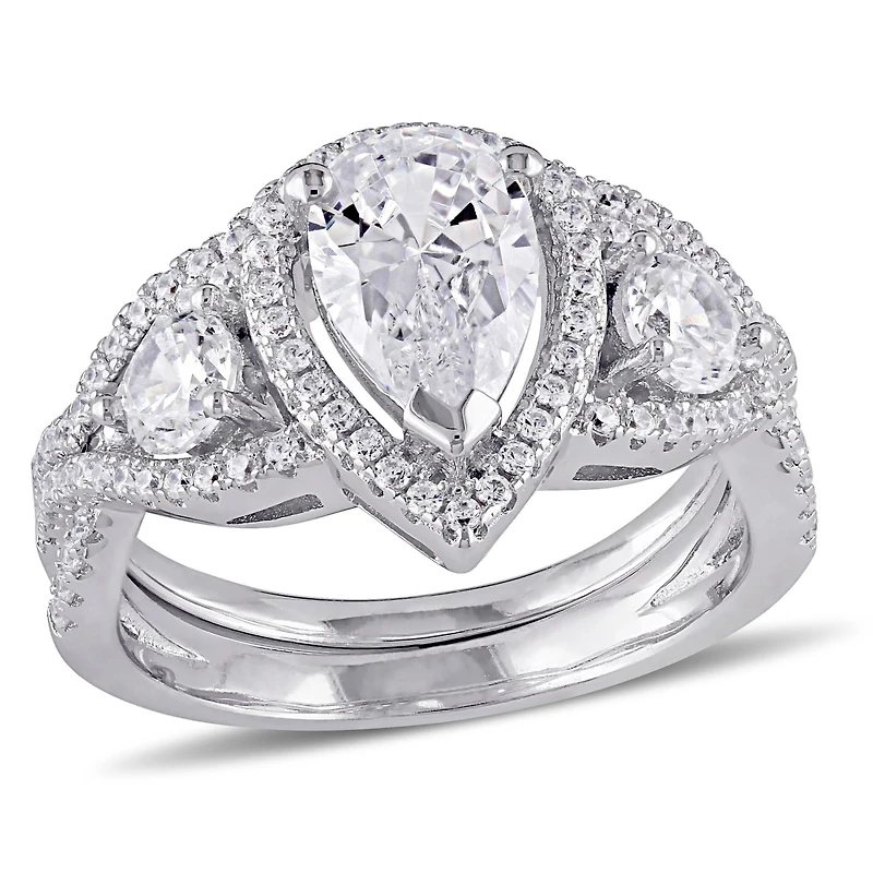 Julianna B Sterling Silver Halo Pear Shaped Cubic Zirconia Bridal Set
