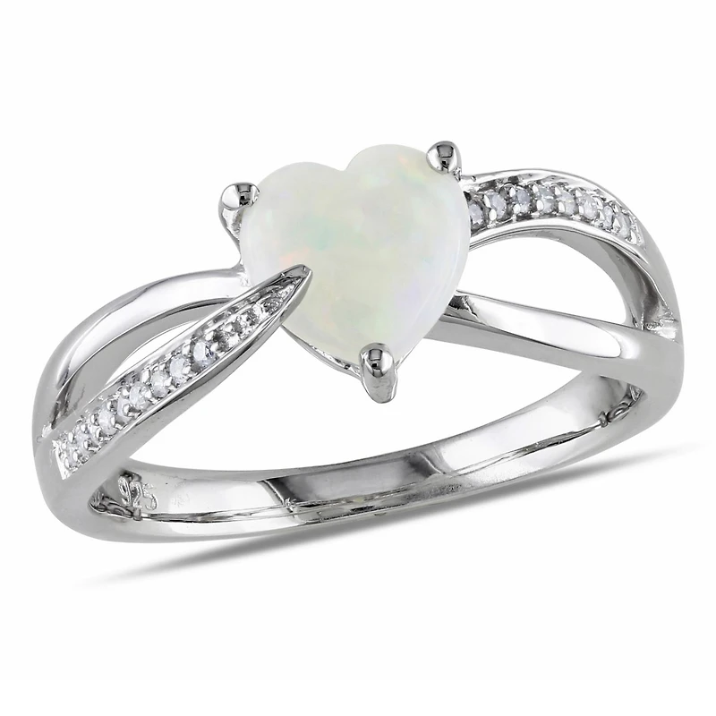 Julianna B Sterling Silver Opal and Diamond Heart Crossover Ring in Ottawa, ON