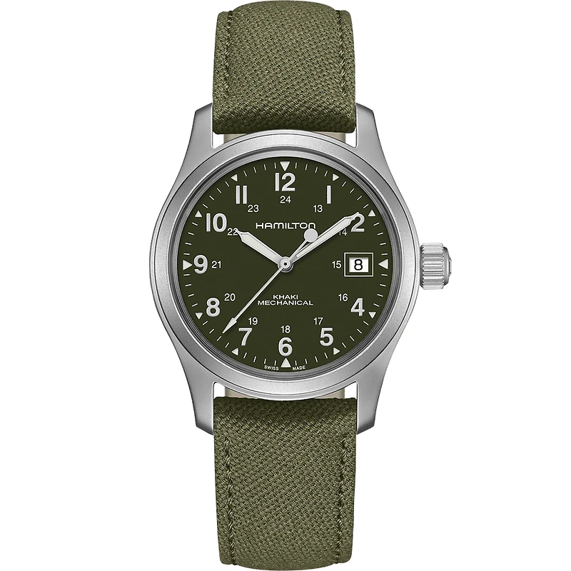 This is simplicity at its best. The Khaki Field Officer Handwinding offers basic functions and components for the no-nonsense, rugged watch wearer. Available with a choice of leather or canvas strap it is a timepiece not to be overlooked.*Featured in Pearl Harbor (2001). Worn by Capt. Rafe McCawley / Capt. Danny Walker, played by Ben Affleck / Josh Hartnett.