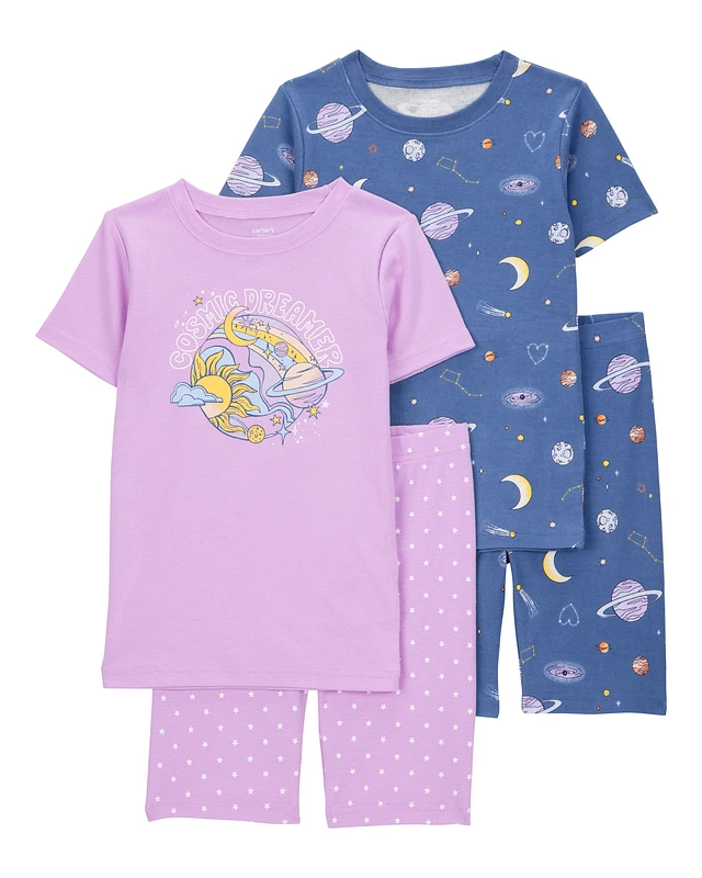 Baby Girl Space Star Print 100% Cotton Long-Sleeve Snug Fit 4-Piece Pyjamas - White/Purple