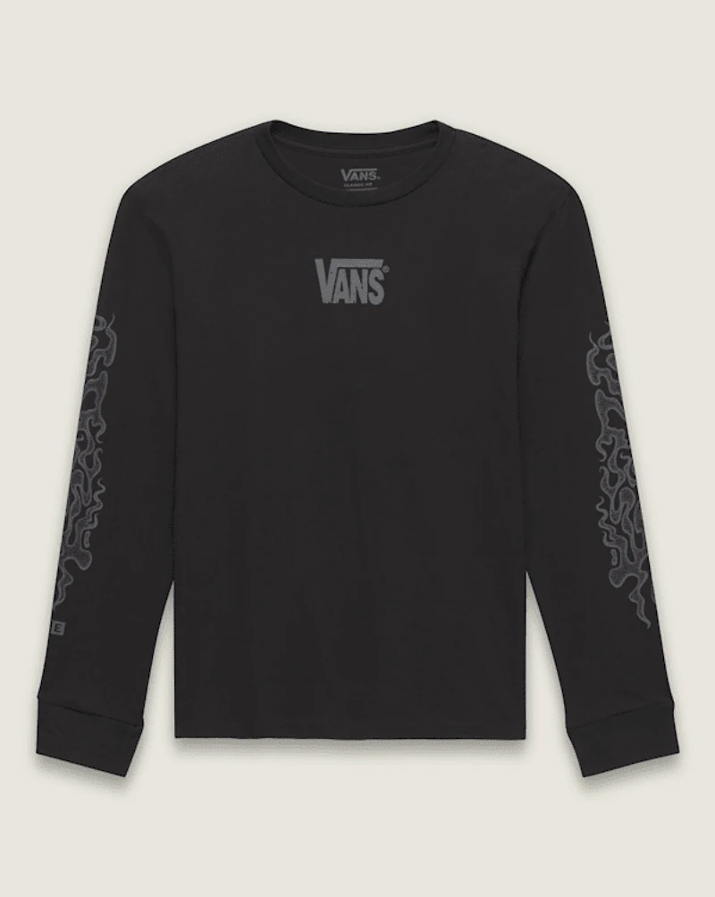 The Kids MTE Wave Dunes Long Sleeve T-Shirt is a long sleeve crew neck T-shirt with a screenprinted graphic of a Vans® logo on the chest, and artistic waves down the sleeves.