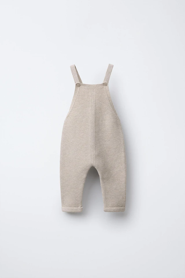 LONG KNIT OVERALLS WITH CROSS-STITCH DETAILS