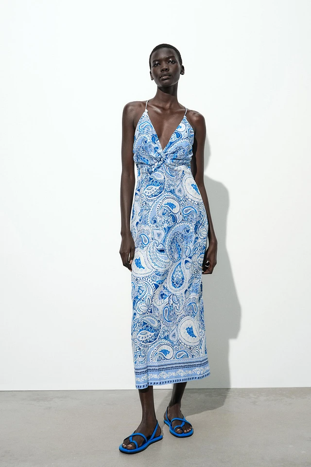 TULLE PRINT MIDI DRESS WITH FOULARD