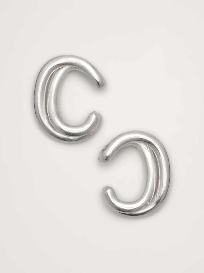 An organic take on an ear cuff designed for pierced and unpierced ears, in 14k-gold or 999-silver plated brass. 14k-gold or 999-silver plated brass.