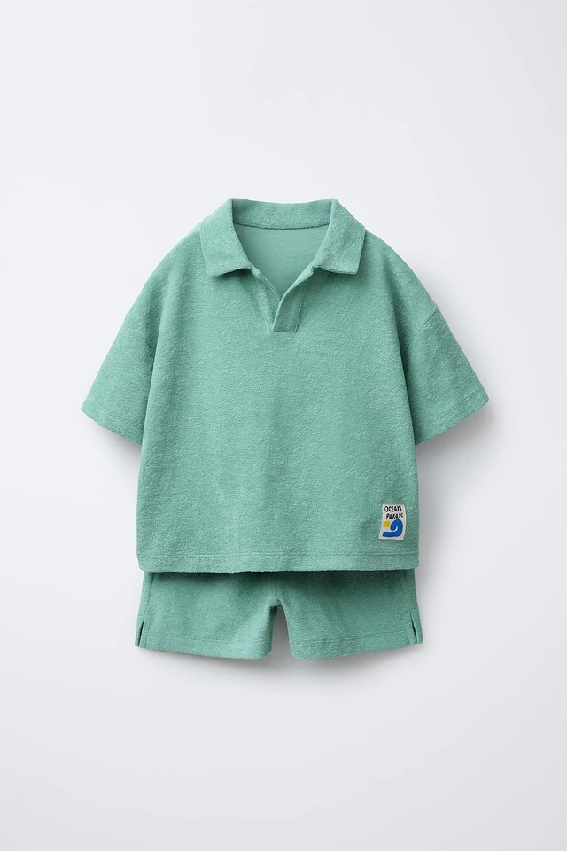 LABEL TERRY CLOTH POLO AND SHORTS SET