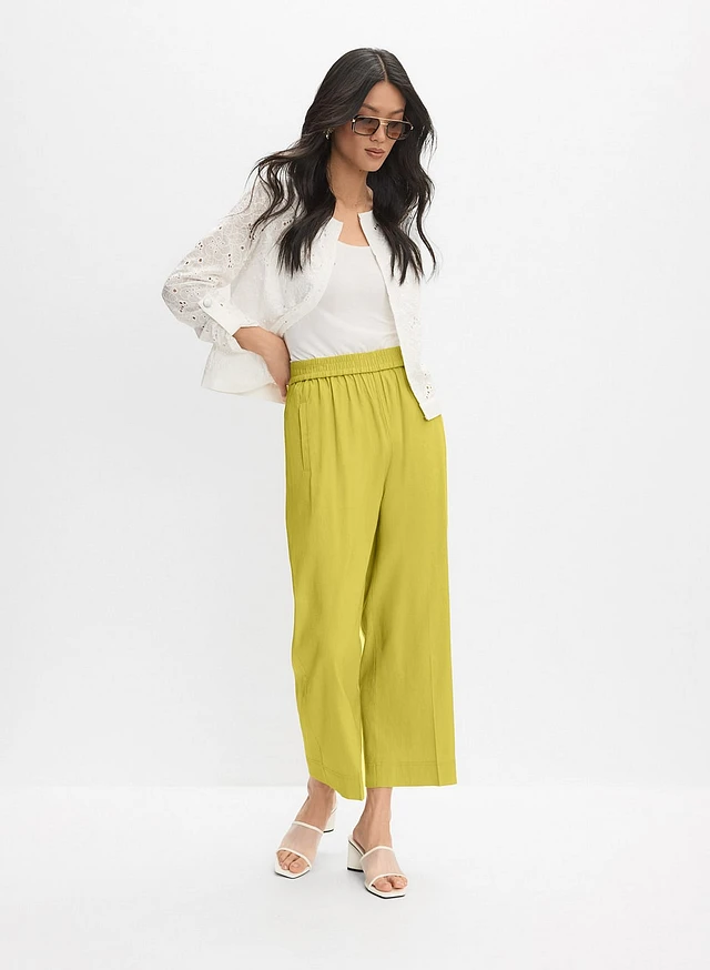 Lace Crew Neck Jacket & Linen-Blend Culotte Pants