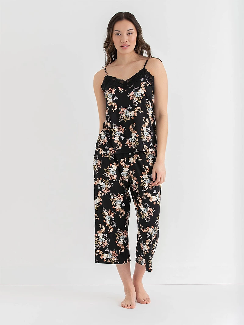 Lace Trim Cami with Crop Pant Sleepset Multicolour Floral in Ottawa, ON