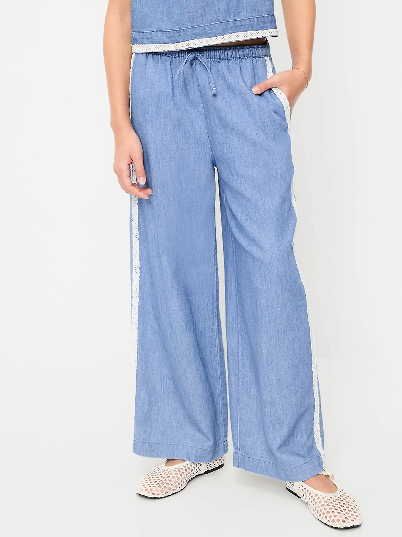 Lace-Trim Chambray Pants for Girls