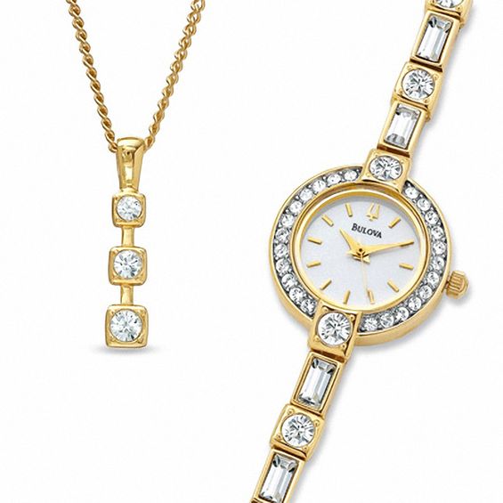 Ladies' Bulova Gold-Tone Watch and Necklace Boxed Set (Model: 98X106)