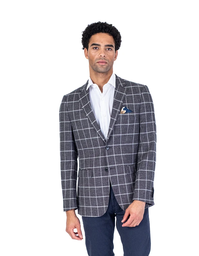 1/2 Lined Stretch Plaid Blazer - Grey / Blue