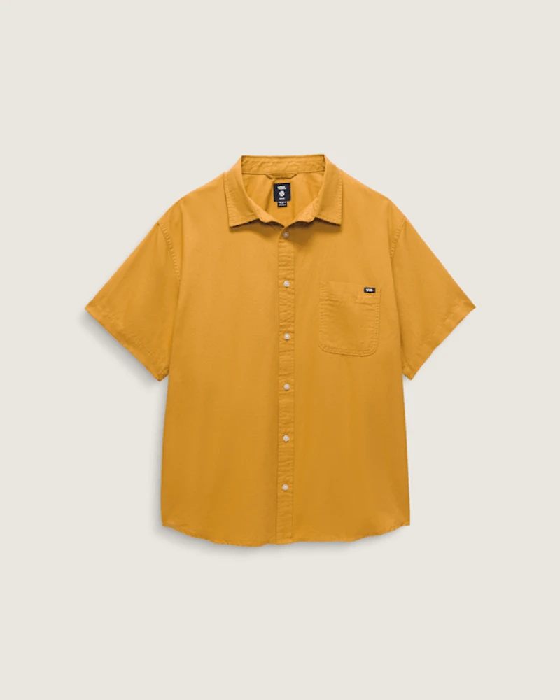 Crafted of a blend of cool, breathable linen and cotton, the Lawson Solid Woven Shirt is a wardrobe staple that looks as at home at the skate park as it is in the boardroom. With a simple buttondown front and rounded hemline, it's finished with branded Vans® details that nod to street style.