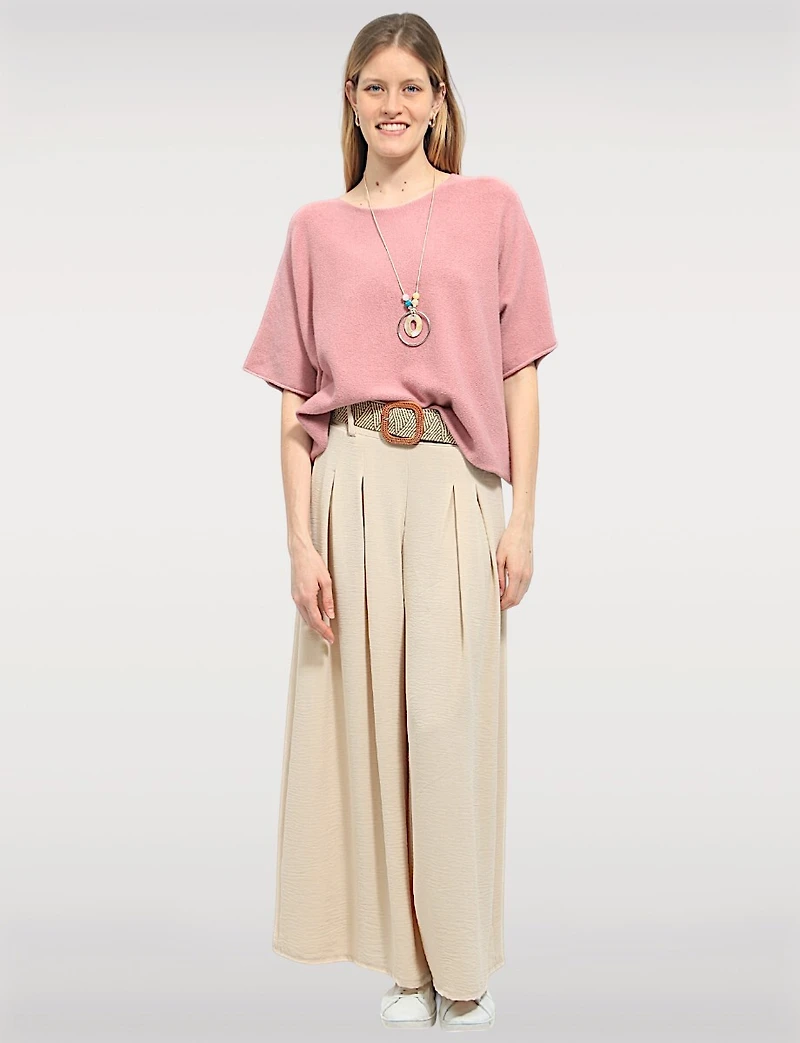 Enjoy easy elegance with this short sleeve knit top from Froccella. Made from a soft viscose and polyester blend, it offers a relaxed fit that's perfect for casual outings or cozy nights. The included statement necklace adds a touch of sophistication, making it easy to style up or down. Ideal for a coffee date or a relaxed walk.