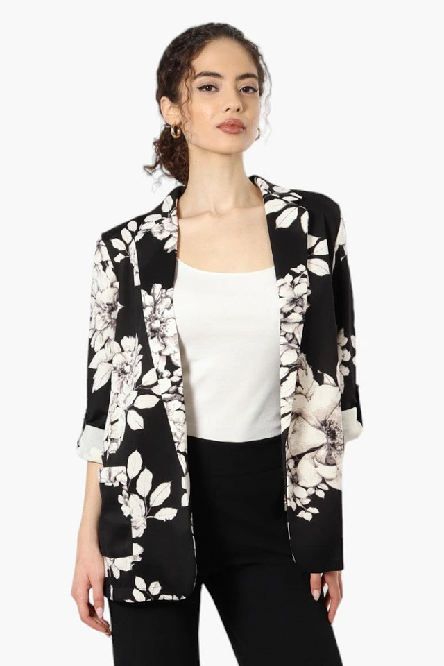 Limite Floral Roll Up Sleeve Open Blazer