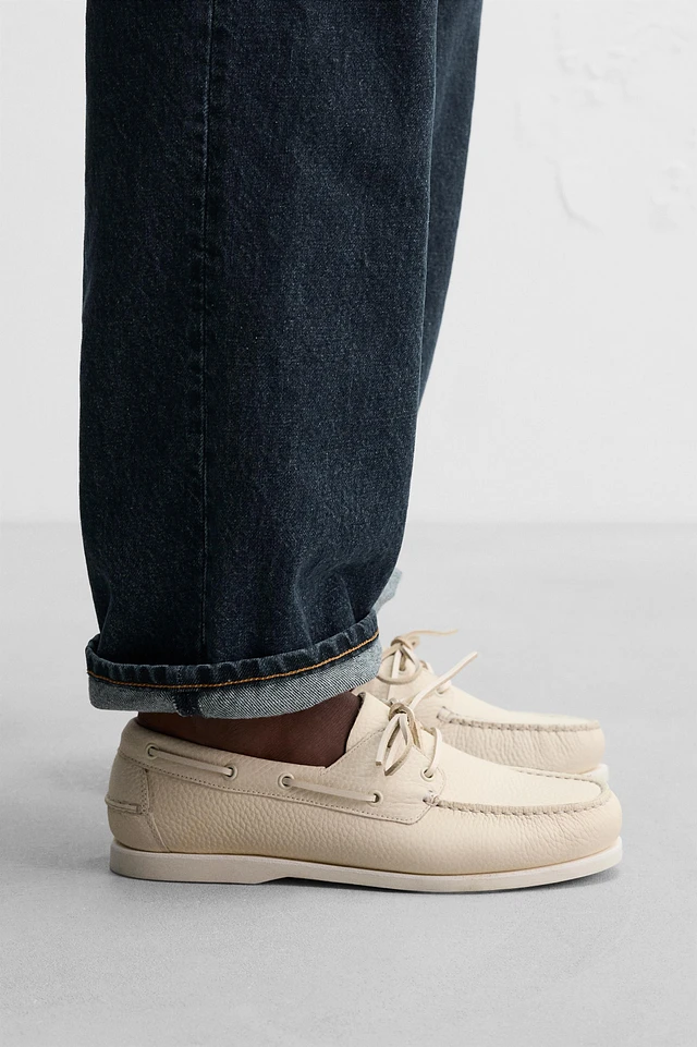 LEATHER BOAT SHOES WITH VIBRAM® SOLE AARON LEVINE X ZARA
