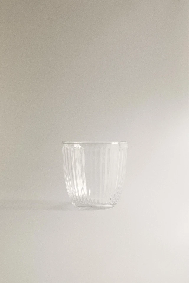 GLASS TUMBLER WITH RAISED GEOMETRIC DESIGN