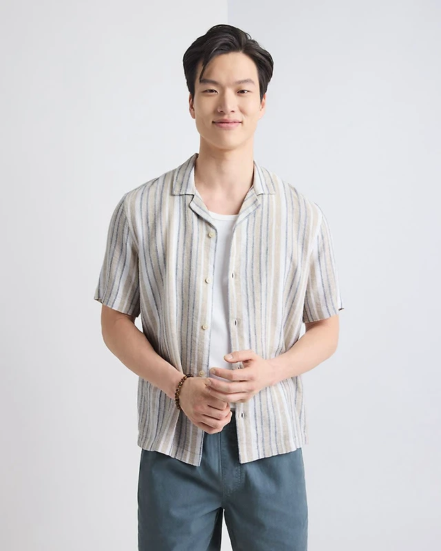 Linen-Blend Short-Sleeve Striped Shirt with Camp Collar