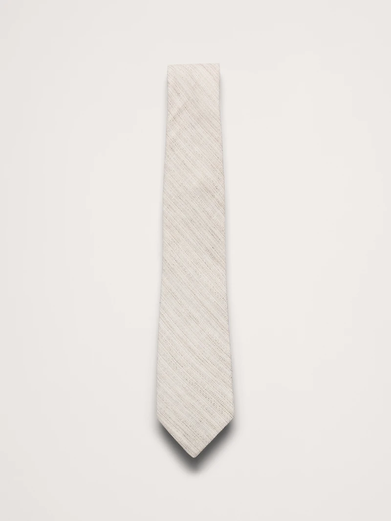 We cut this slim tie from a linen and cotton fabric we love for its luxurious, slub texture. Measures 3" at widest point.