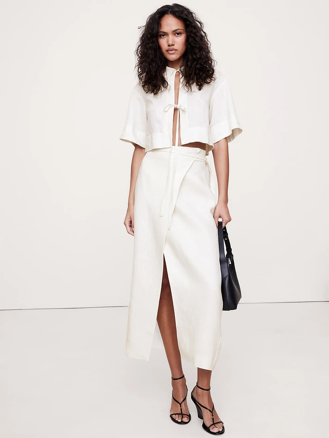 Wool-Blend Ruffle Tie-Front Cropped Cardigan
