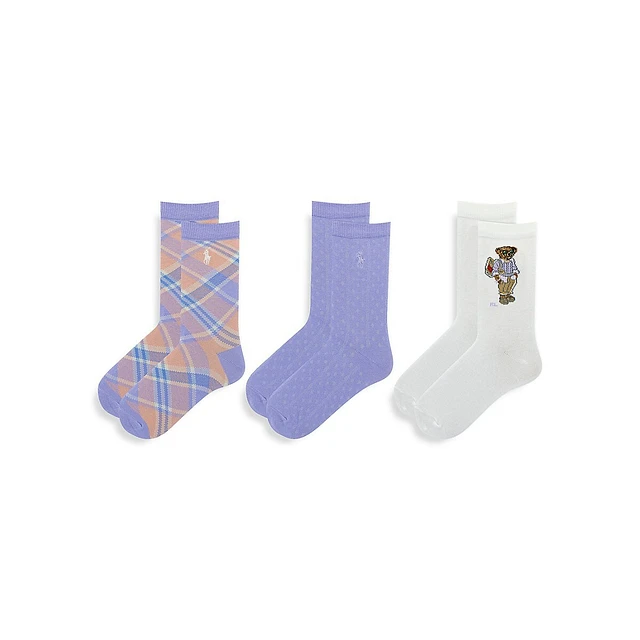 Little Girl's 3-Pair Preppy Bear Crew Socks