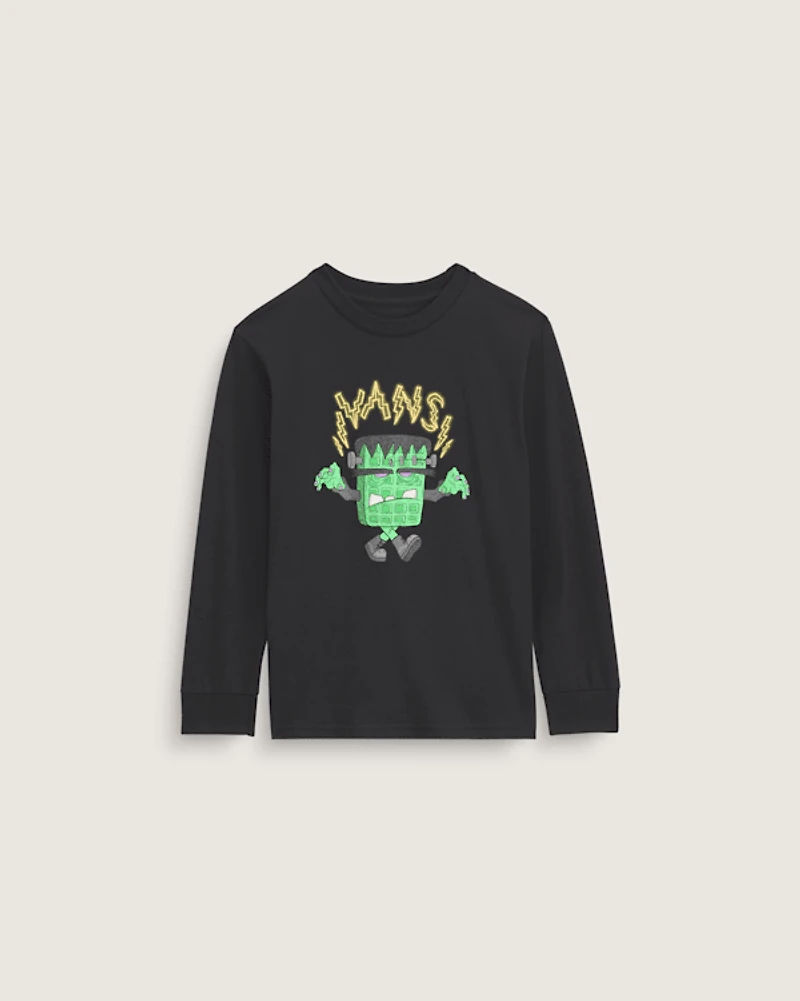 The Little Kids Frankenwaffle Halloween Long Sleeve T-Shirt brings spooky season energy with a Vans twist. Featuring a glow-in-the-dark Frankenwaffle character, this long sleeve tee lights up the night with electric details and a nod to our iconic waffle sole. Soft cotton keeps it comfy from trick-or-treat to bedtime