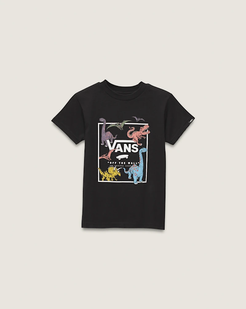 This short-sleeve crew neck tee features a vibrant dinosaur graphic on the front and a glow-in-the-dark dino design on the back. The standard fit and soft cotton fabric provide all-day comfort for young explorers and skaters alike.