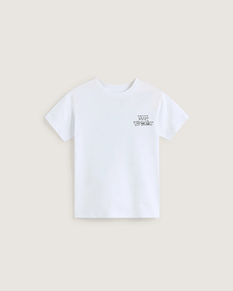 With short sleeves for casual, everyday style, the Little Kids Stomper T-Shirt features artwork that calls out Vans' off the wall history on the front and back. Crafted using carded ringspun fabrication to make your shirt soft and strong, but still super comfortable, the crewneck silhouette offers a classic look.