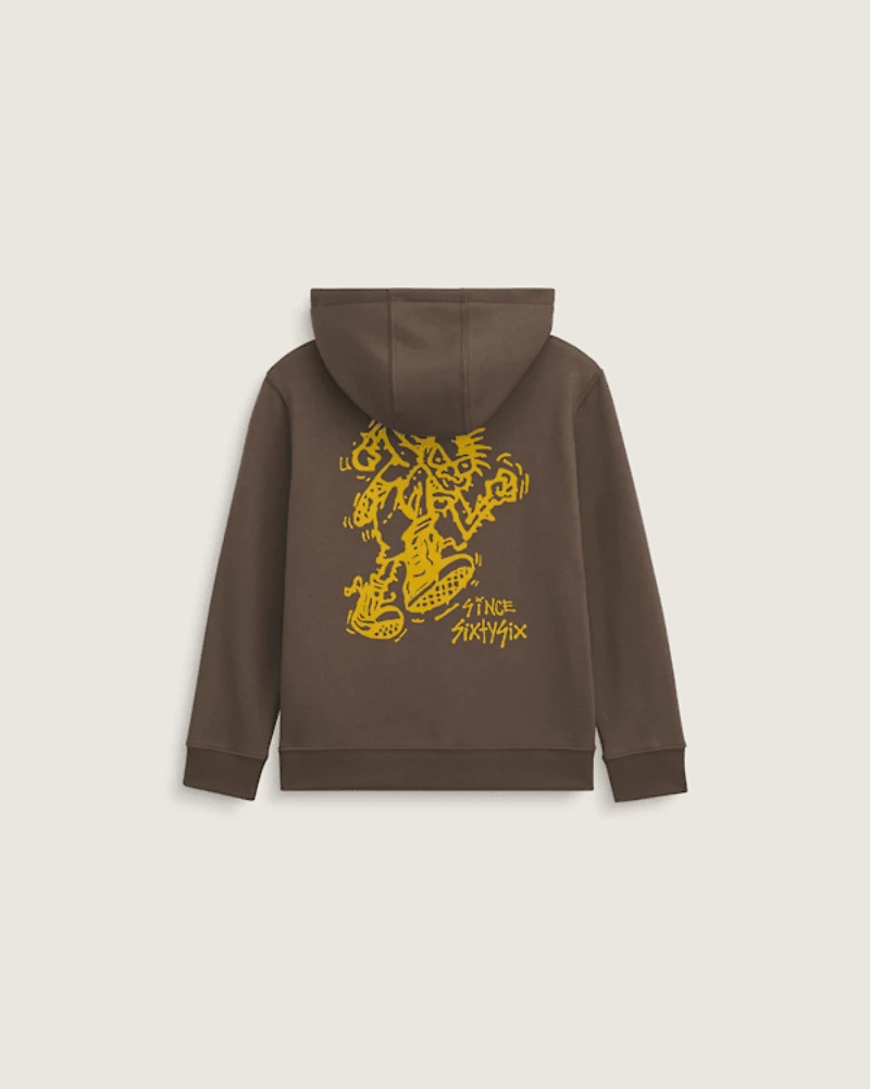 With long sleeves for added coverage, the Little Kids Stomper Zip Hoodie features screen print artwork for long-lasting design that calls out Vans' off the wall history on the front and back. Crafted with a soft brushed interior for comfort and warmth, it also features a full-length front zipper for adaptability.