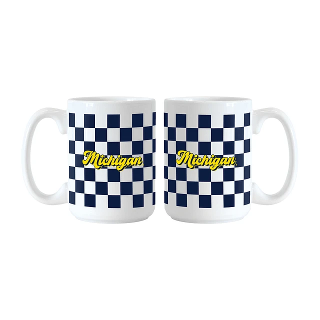 Logo Brands Michigan Wolverines 2-Pack 15oz. Checkered Wordmark Mug Set